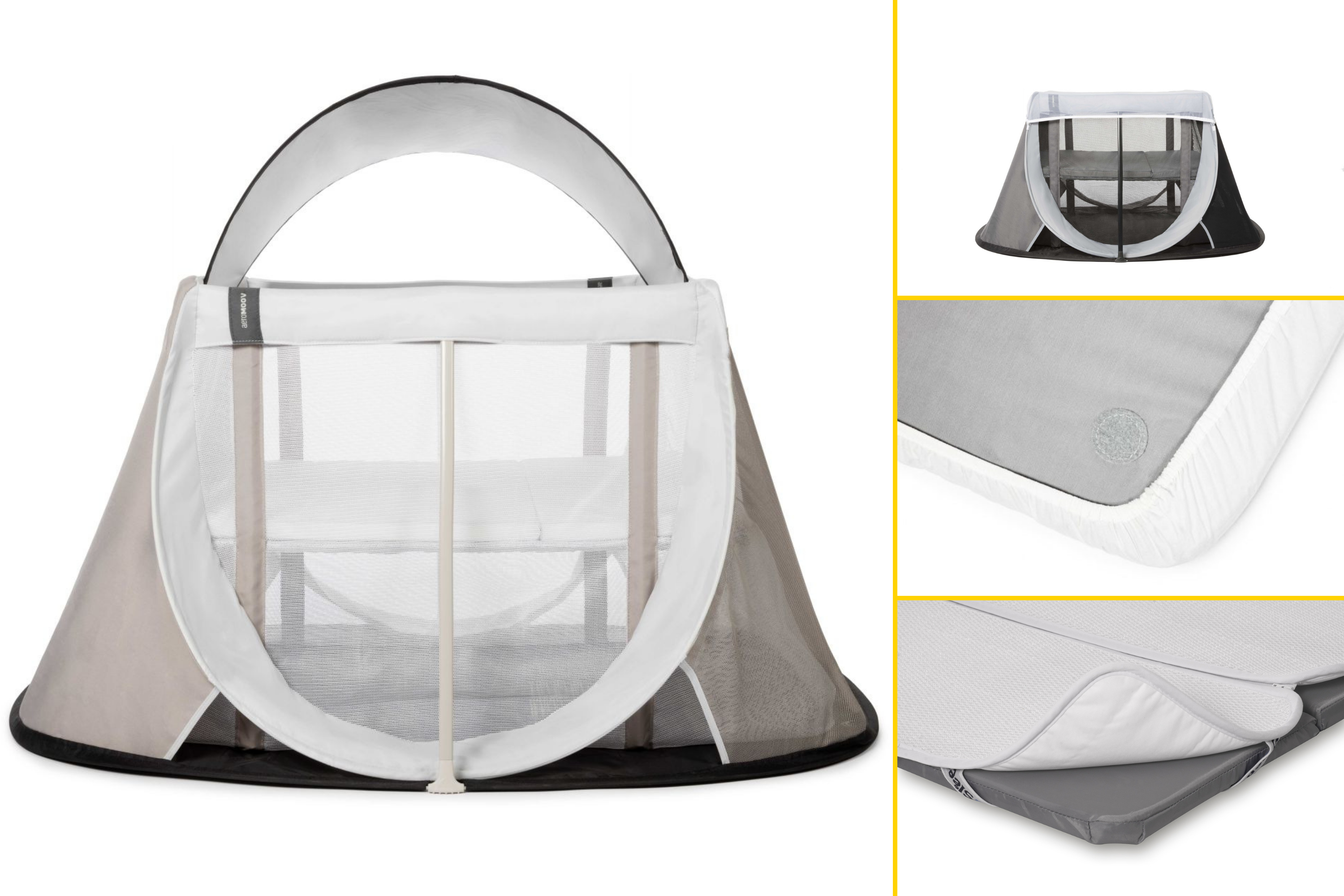 AeroMoov Instant dostępne jest w trzech wersjach kolorystycznych: szary, beżowy i błękitny. Do łóżeczka można dokupić kilka akcesoriów. Moskitiera pomaga chronić śpiące dziecko przed komarami i innymi insektami. Daszek UV, który wygląda jak fotograficzna blenda pozwala na osłonięcie dziecka przed słońcem, co jest super ważne jeśli planujecie używać łóżeczka jako kojca poza domem. A ochraniacz i prześcieradło na materac (dopasowane do obu rozmiarów materaca) zwiększą komfort śpiącego dziecka :)