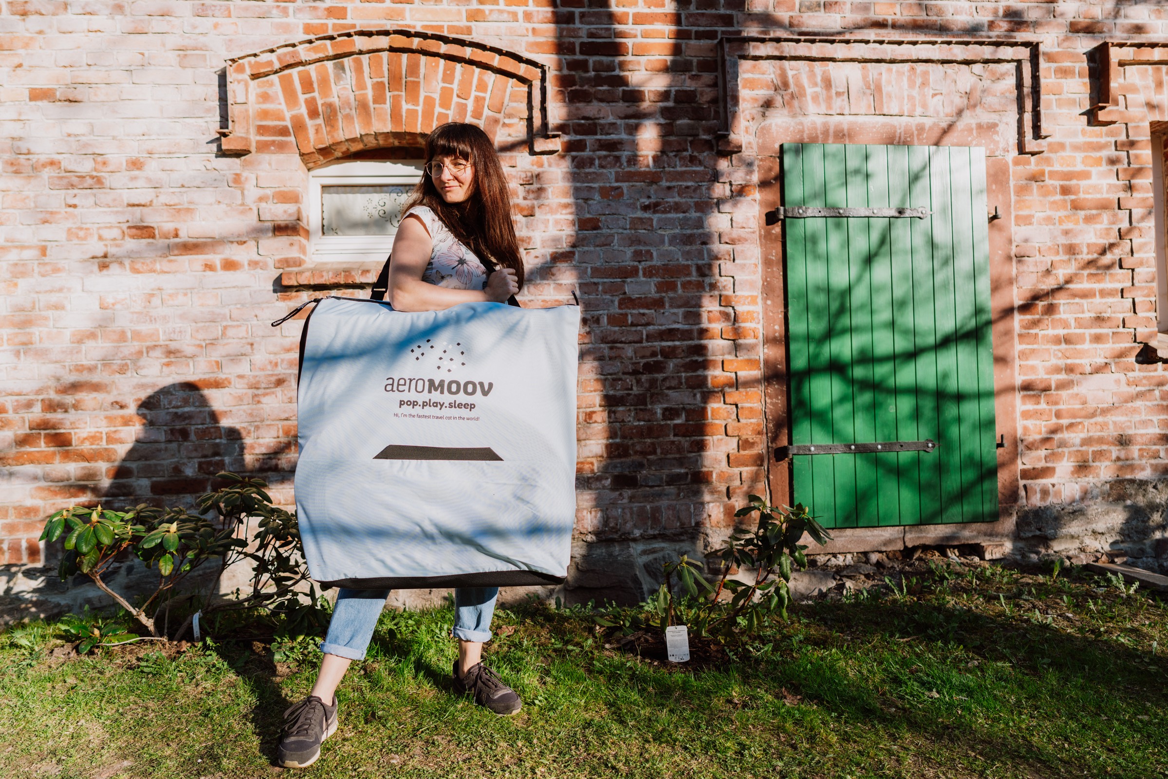 Kiedy rodzice zaczynają poszukiwania łóżeczka turystycznego, to najczęściej trafiają na te najbardziej popularne — duże, składane łóżeczka, które nie mają zbyt wiele wspólnego z podróżowaniem. Są wielkie i ciężkie, a materace w tych łóżeczkach bardzo często są twarde, więc wymagają dokupienia zwykłego materaca, co sprawia, że łóżeczko, które miało być turystyczne, staje się mocno stacjonarne. Oczywiście takie łóżeczko świetnie się sprawdzi na przykład u dziadków, ale co kupić, jeśli zależy nam na czymś, co zmieści się do samochodu, będzie miało wygodny materac i będzie rozkładało i składało się w kilka sekund? Te wszystkie wymagania spełnia łóżeczko podróżne AeroMoov Instant Travel Cot, które testowałam przez ostatnie tygodnie zarówno u dziadków, jak i podczas majówki w Bieszczadach, jako łóżeczko i jako ogrodowy kojec!