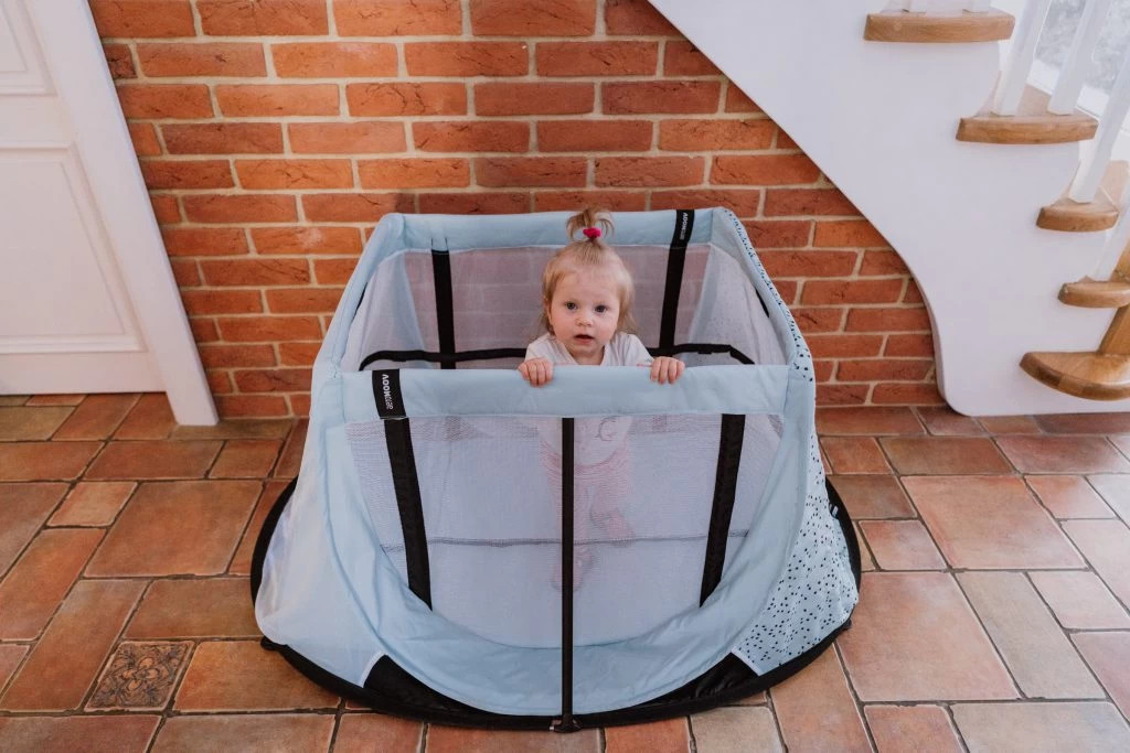 Boki łóżeczka są wysokie 63 cm, więc nie ma żadnych obaw, że dziecko z łóżeczka samo wyjdzie. A to oznacza, że AeroMoov Instant może pełnić również rolę turystycznego kojca! Łóżeczko możemy zabrać ze sobą do ogródka (spód jest wodoodporny), więc świetnie sprawdzi się w trakcie wakacji, kiedy będziecie chcieli się nacieszyć ładną pogodą :)