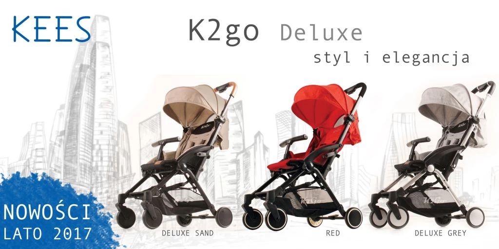 Za kilka dni w sklepach pojawią się nowe wersje kolorystyczne Kees K2Go, więc jeśli zastanawiacie się nad kupnem, to rozważcie też Keesa w kolorze czerwonym (model standard) oraz dwa nowe kolory Deluxe (Sand i Light Grey). Nowe wózki mają siedziska uszyte z innego materiału – tkaniny o grubszym splocie.
