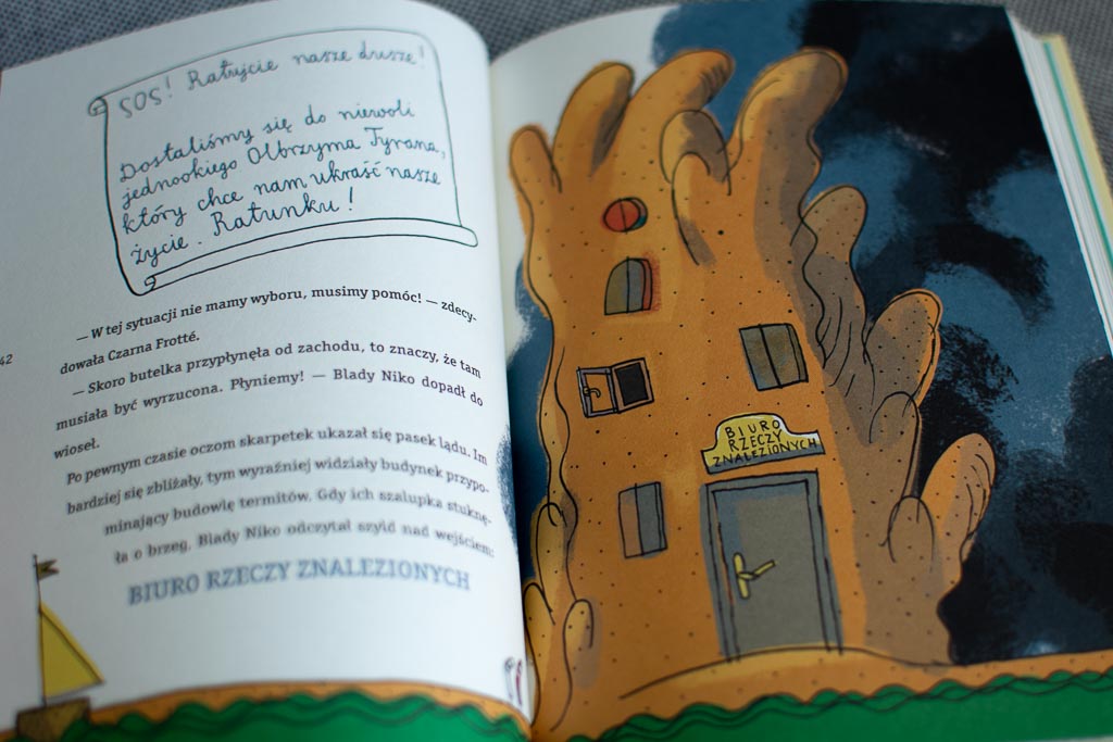 „Banda Czarnej Frotté” to trzecia część przygód skarpetek autorstwa Justyny Bednarek z rewelacyjnymi ilustracjami Daniela de Latour. Tym razem śledzimy przygody Czarnej Frotté, która zamiast trafić do śmietnika, w ostatniej chwili wskakuje do dziury pod pralką i ucieka w poszukiwaniu lepszego życia. W trakcie mrożących krew w żyłach (albo raczej nitkach) przygód spotyka inne pojedyncze skarpetki i werbuje je do swojej bandy. Książka jest tak samo wciągająca, jak dwie poprzednie części, jestem pewna, że dzieciaki pokochają Czarną Frotté i jej bandę. Jeśli jesteście fanami skarpetkowej serii, to obowiązkowo musicie przeczytać trzecią część, a jeśli nie znacie jeszcze „Niesamowitych przygód dziesięciu skarpetek” ani „Nowych przygód skarpetek” to koniecznie musicie nadrobić! Zakochacie się!