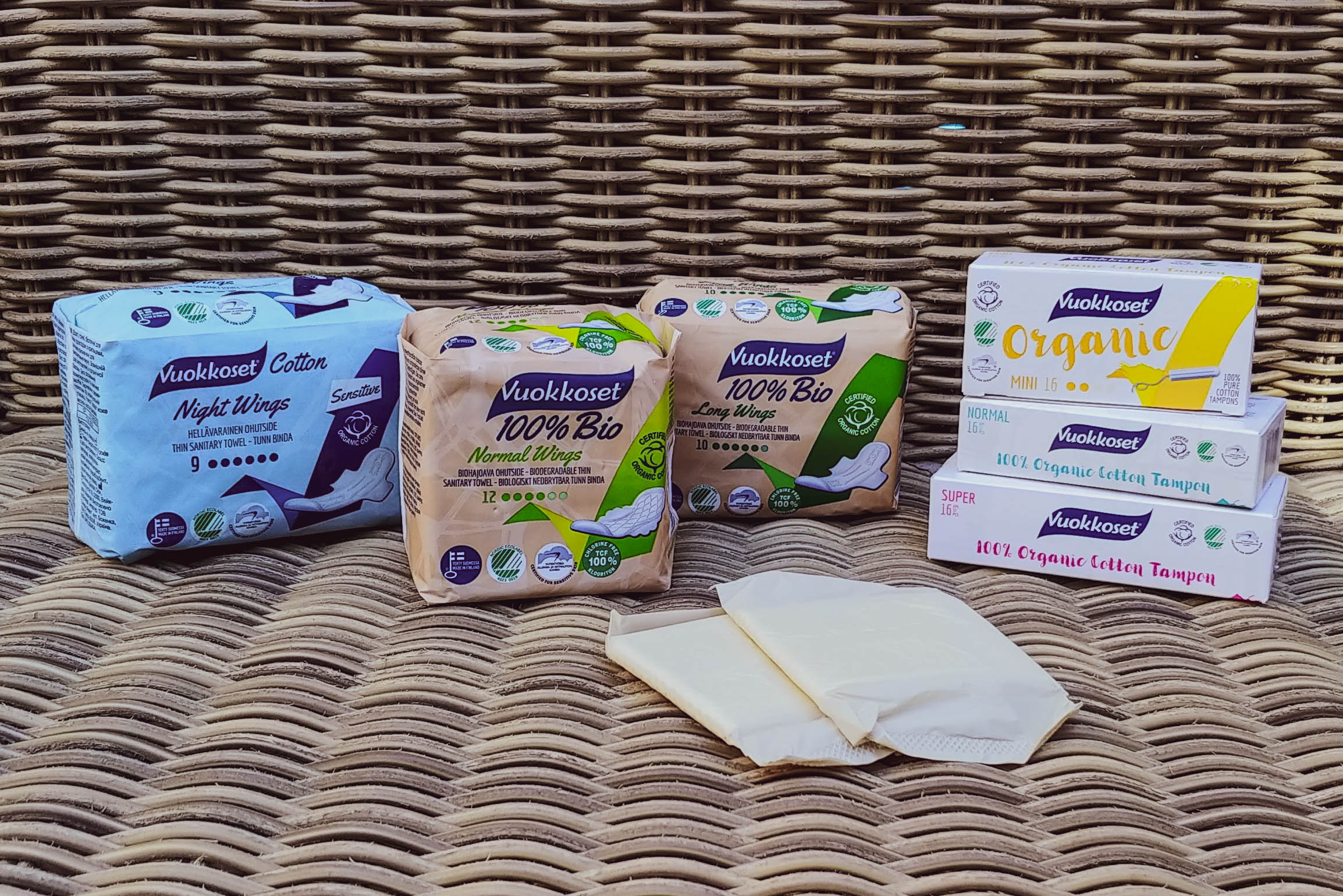 Oprócz podpasek i wkładek Vuokkoset ma w swojej ofercie również biodegradowalne tampony (w 3 rozmiarach). Wszystkie produkty tej marki znajdziecie między innymi w Ekodrogerii.