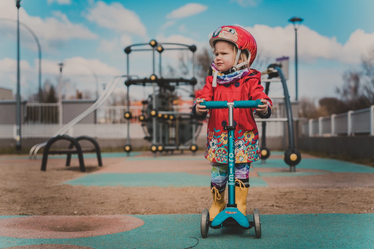 Hela na jeździku Mini Micro jeździła przez cały jeden sezon, gdy miała niecałe 2 lata. Była mega drobinką, która nie była zbyt sprawna fizycznie (zaczęła chodzić w wieku 20 miesięcy), ale lubiła powozić pupę na Mini Micro. Korzystaliśmy z regulowanego siodełka, więc akurat w przypadku Heli faktycznie ta regulacja bardzo się przydała. Najpierw jeździła na siodełku znajdującym się na wysokości 20 cm, a potem na 28 cm.