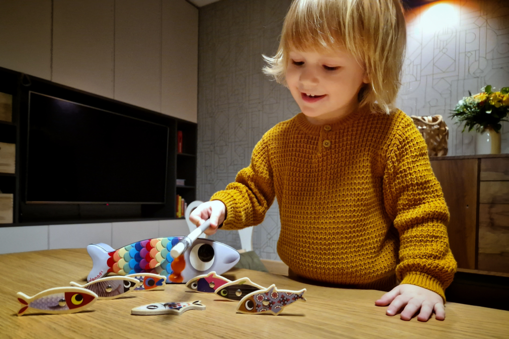 Łowienie rybek w stawie nie jest proste i wymaga dużego skupienia, koordynacji i cierpliwości. Będzie świetną zabawą nie tylko dla maluchów, ale starszego rodzeństwa i rodziców. Można ją kupić w Edukatorku za 110 zł.
