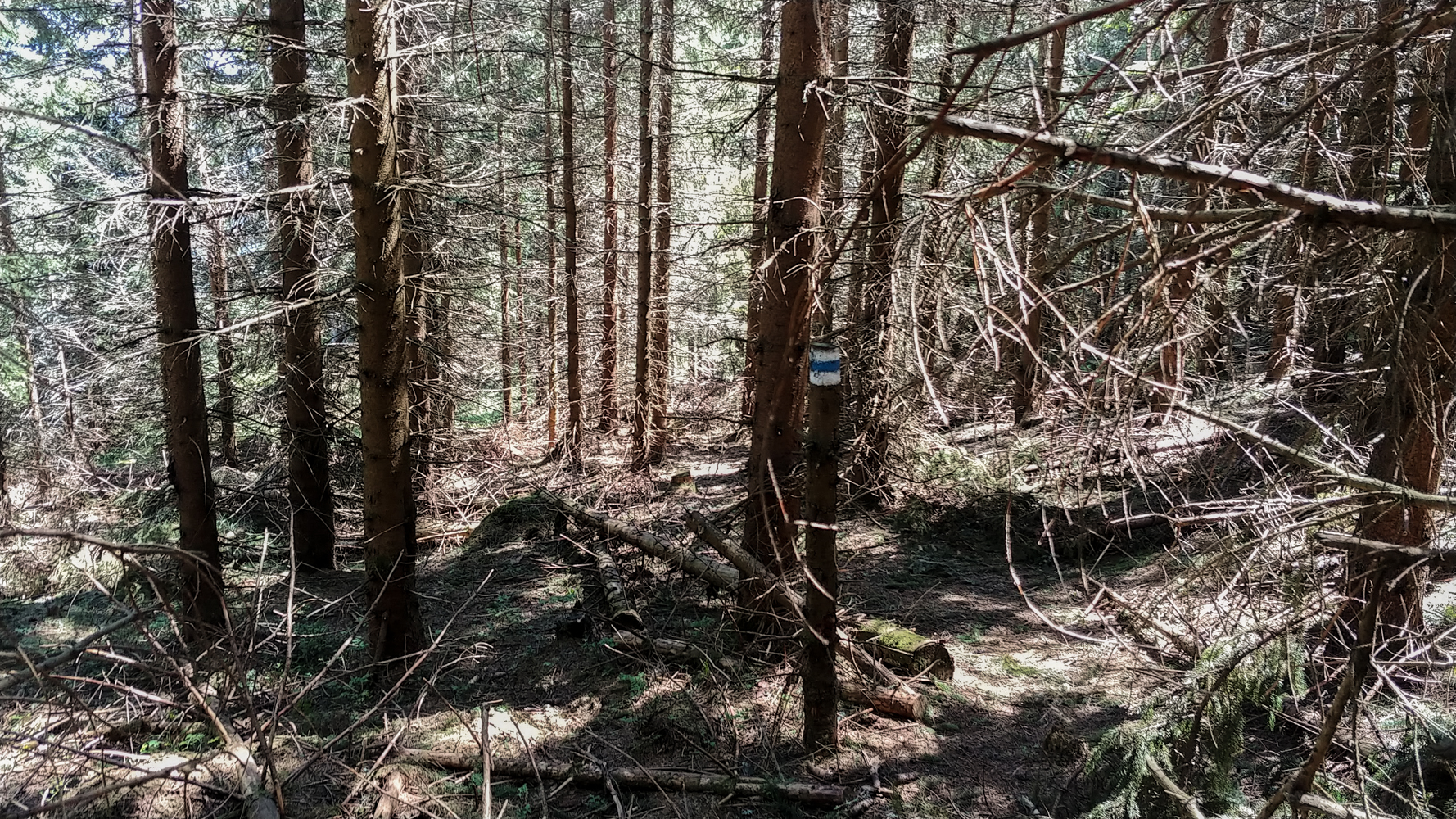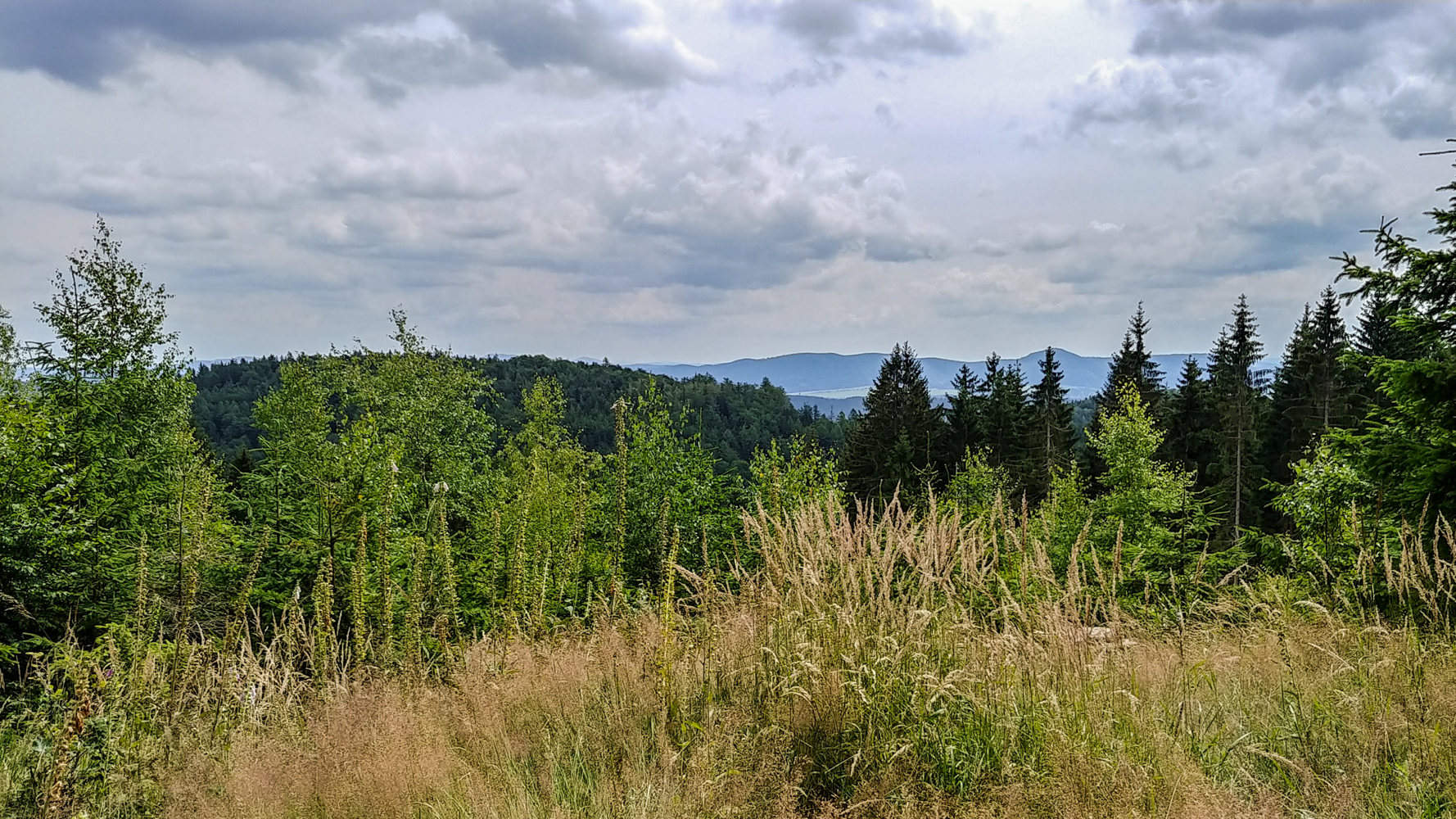 Lasocki Grzbiet to góry niewysokie — schronisko znajduje się na wysokości 618 m n.p.m, a najwyższy szczyt grzbietu to Łysocina (1189 m n.p.m.), na większości tras pokonuje się więc dość małe przewyższenia, rzadko zdarzają się ostre podejścia, bo stoki są łagodne. Turystów praktycznie tam nie ma — my podczas naszych dwóch całodziennych wędrówek spotkałyśmy w sumie 10 osób (5 rowerzystów z naszego schroniska, 2 turystów z naszego schroniska i 3 Czechów na szlaku biegnącym granicą z Czechami) i kilka razy leśniczego w samochodzie. Po górach chodziłyśmy przez kilka godzin i nie było tam żywego ducha! Ma to swoje zalety — szlaki są niezadeptane, jest cicho i bardzo spokojnie i nie ma tam żadnych śmieci. Z drugiej strony łatwiej się zgubić, bo szlaki są słabo utrzymane, nie ma możliwości, by iść bez mapy, bo nikt nam nie pomoże, a słabe oznaczenia szlaków mogą dać się we znaki.